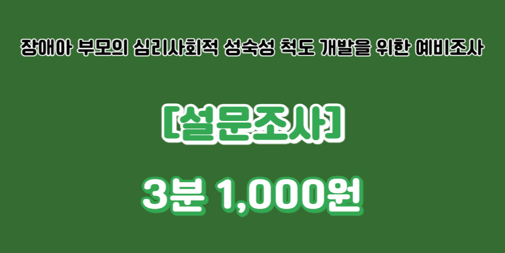 [274번째 설문] 장애아 부모의 심리사회적 성숙성 척도 개발을 위한 예비조사 - 3분 1,000원