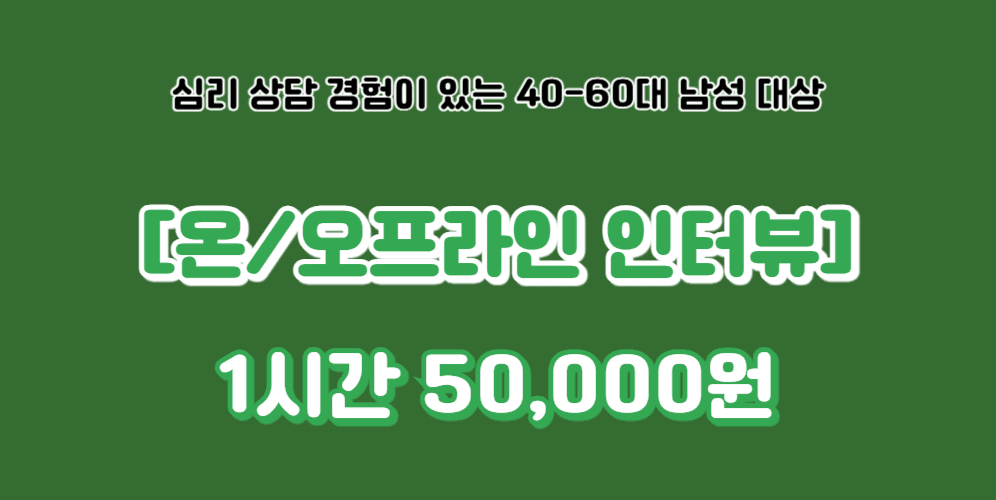 [278번째 인터뷰] 심리 상담 경험이 있는 4060 남성 - 온/오프라인 1시간 5만 원