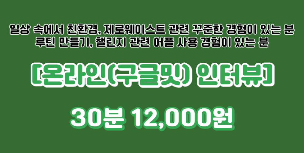 [284번째 인터뷰] 일상 속에서 친환경, 제로웨이스트 관련 꾸준한 경험이 있는 분 - 온라인 30분 ~ 1시간 12,000원