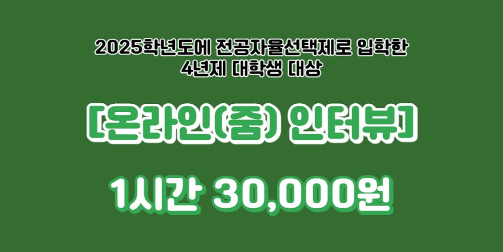 [289번째 인터뷰] 2025학년도에 전공자율선택제로 입학한 4년제 대학생 - 온라인 1시간 3만 원