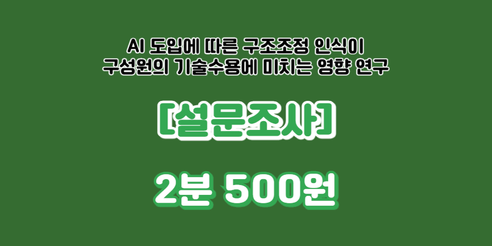 [267번째 설문] AI 도입에 따른 구조조정 인식이 구성원의 기술수용에 미치는 영향 연구 - 2분 500원선을 위한 설문 - 10분 2,000원 Copy