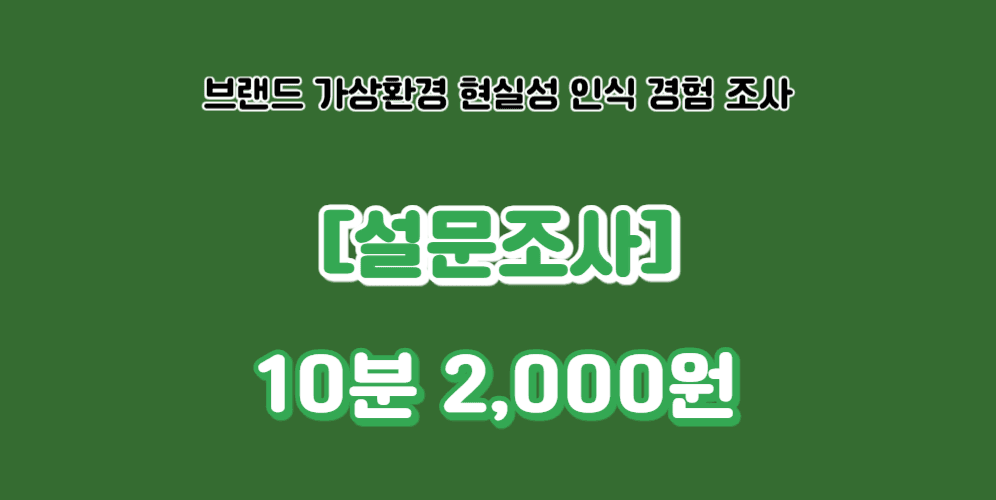 [277번째 설문] 브랜드 가상환경 현실성 인식 경험 조사 - 10분 2,000원