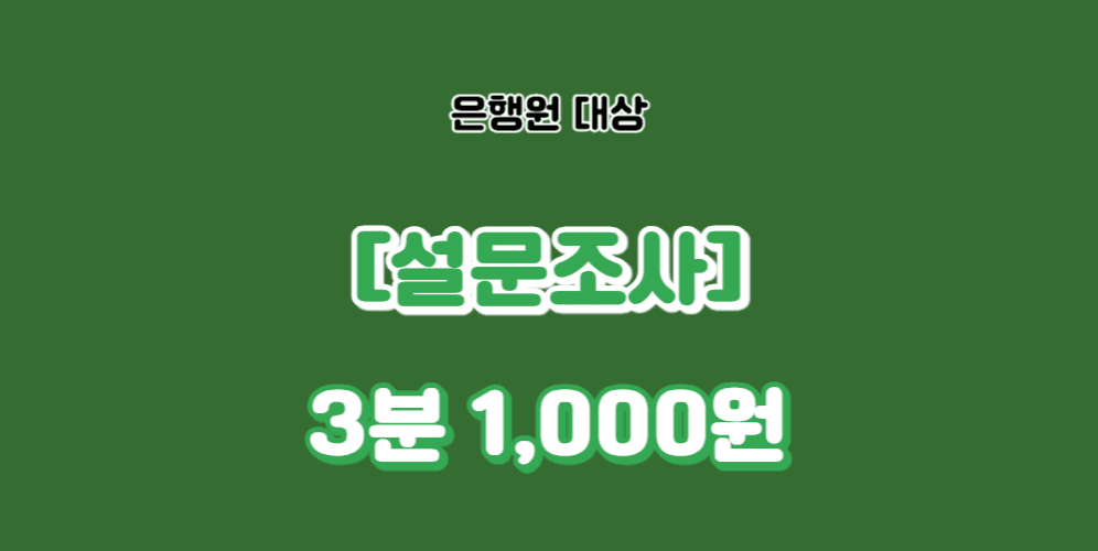 [305번째 설문] 은행원 대상 설문조사 - 3분 1,000원