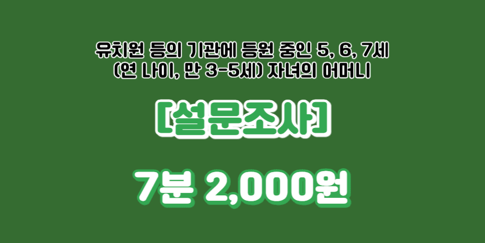 5. 설문 대상자 : 유치원 등의 기관에 등원 중인 5, 6, 7세(연 나이, 만 3-5세) 자녀의 어머니