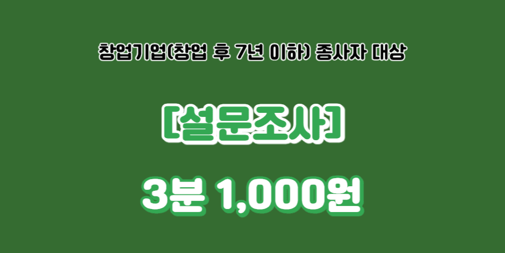 5. 설문 대상자 : 창업기업(창업 후 7년 이하) 종사자, 7번 업종 문항 1/2번 50% + 3/4/5번 50% 할당