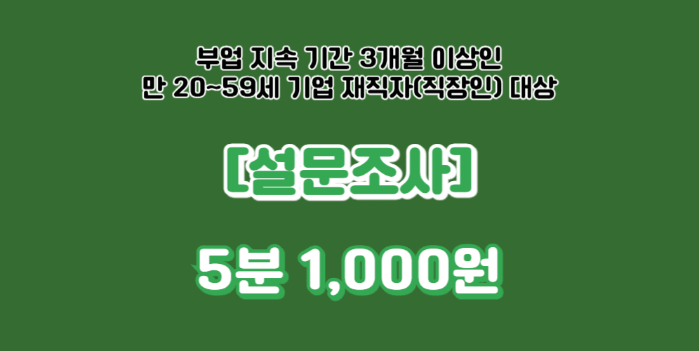[330번째 설문] 부업을 병행하는 직장인들의 심리적 경험이 본업에 미치는 영향 연구 - 5분 1,000원에 대한 소비자 반응 조사 - 7분 1,500원 Copy