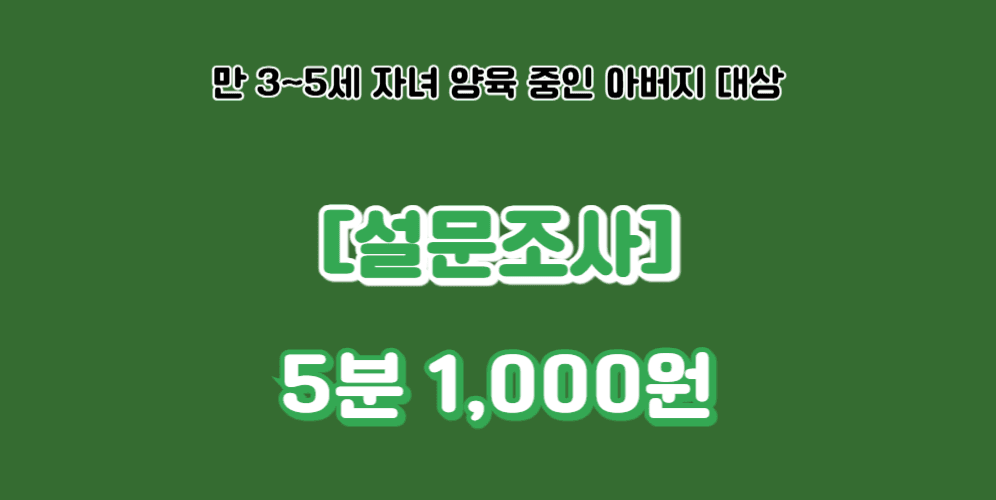 [332번째 설문] 아버지의 놀이 민감성과 유아의 놀이 몰입에 관한 질문지 - 5분 1,000원
