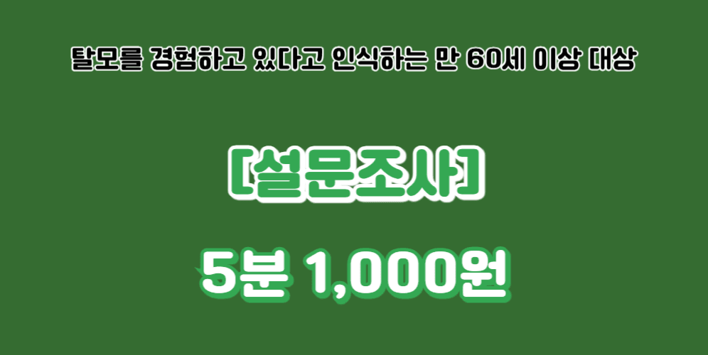 [343번째 설문] 남성 시니어의 탈모 인식과 외모관리 대응 방식에 관한 조사 - 5분 1,000원